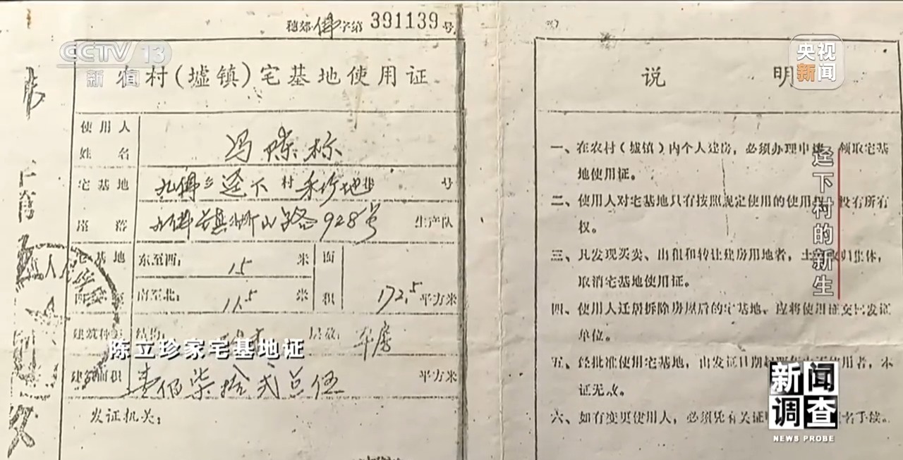 79岁的陈立珍1968年嫁到迳下村的,他们以每平方米2000的价钱向村集体申购了48.81平方米宅后,合适这些政策的我就能够批给你,即即是迳下村唯二持有宅证的合规建建。